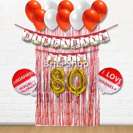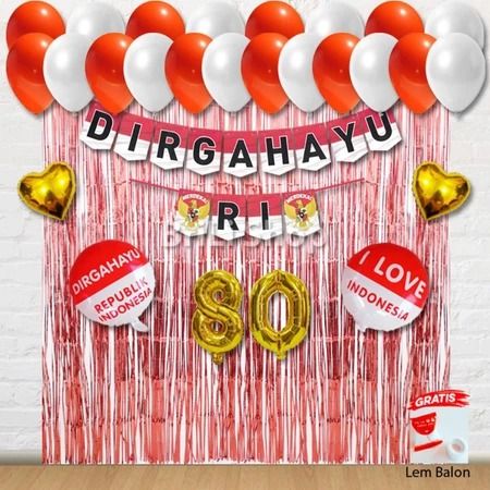HelloShop Paket Set Dekorasi Hiasan Dirgahayu RI 17 Agustus HUT RI Hari Kemerdekaan 17an / Paket Tirai Dekorasi