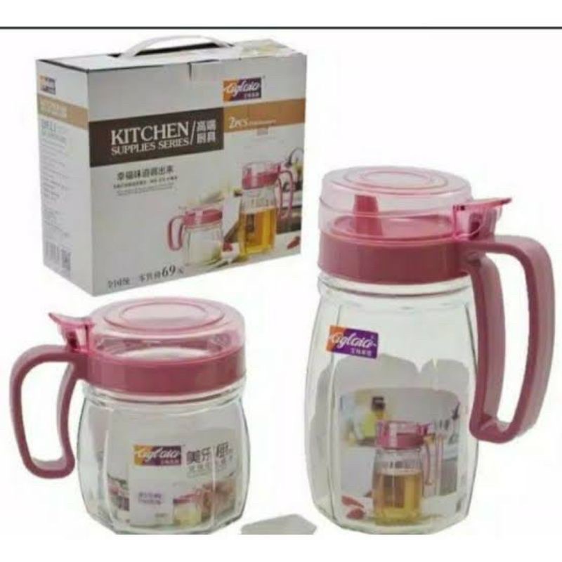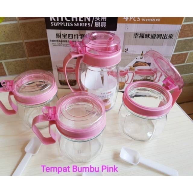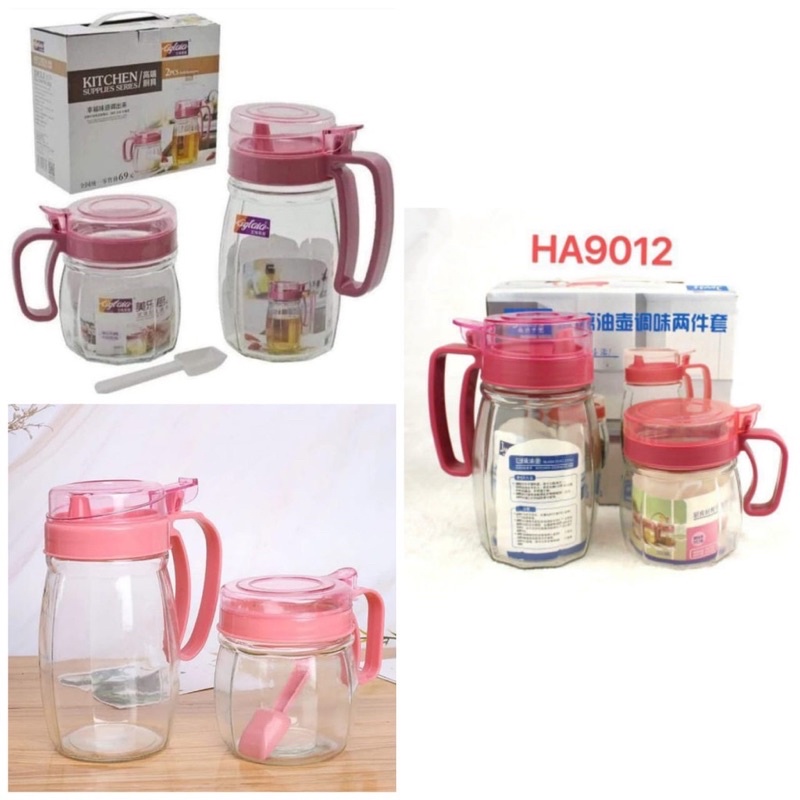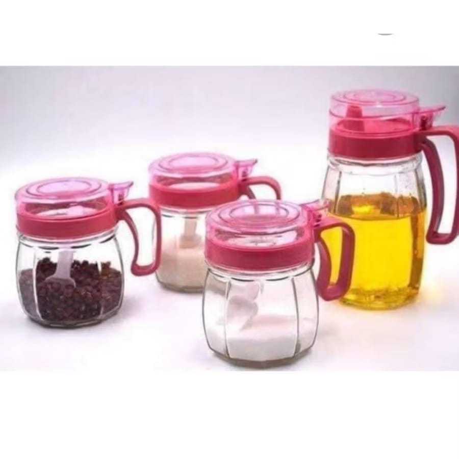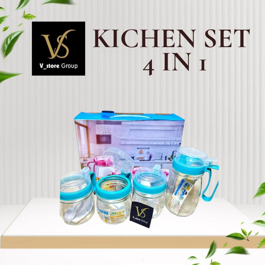 TEMPAT BUMBU DAN MINYAK KITCHEN 4 IN 1/KITCHEN SET 4IN1/BOTOL MINYAK & TEMPAT BUMBU KACA 4IN1/KITCHEN JAR SE