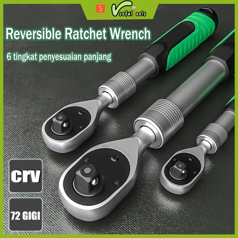 UsefulTools Kunci Pas Ratchet Telescopic CR-V Quick Release Reversible Kunci Soket 1/2' Ratchet Wrench Kunci Inggris Torsi