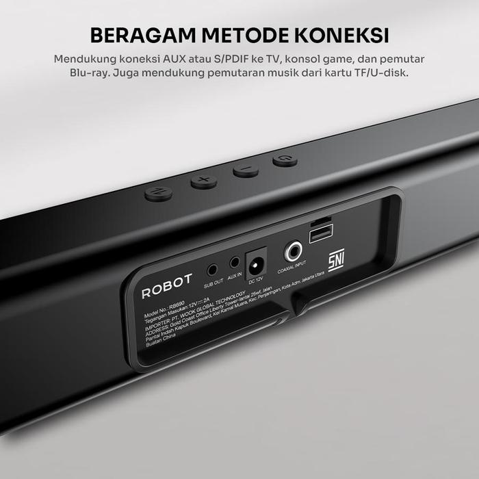 Robot Rb690 Soundbar Speaker + Subwoofer Home Theater 30W Bluetooth 5.4 Tv Pc Aux 3.5Mm Coaxial Micro Sd - Garansi Resmi