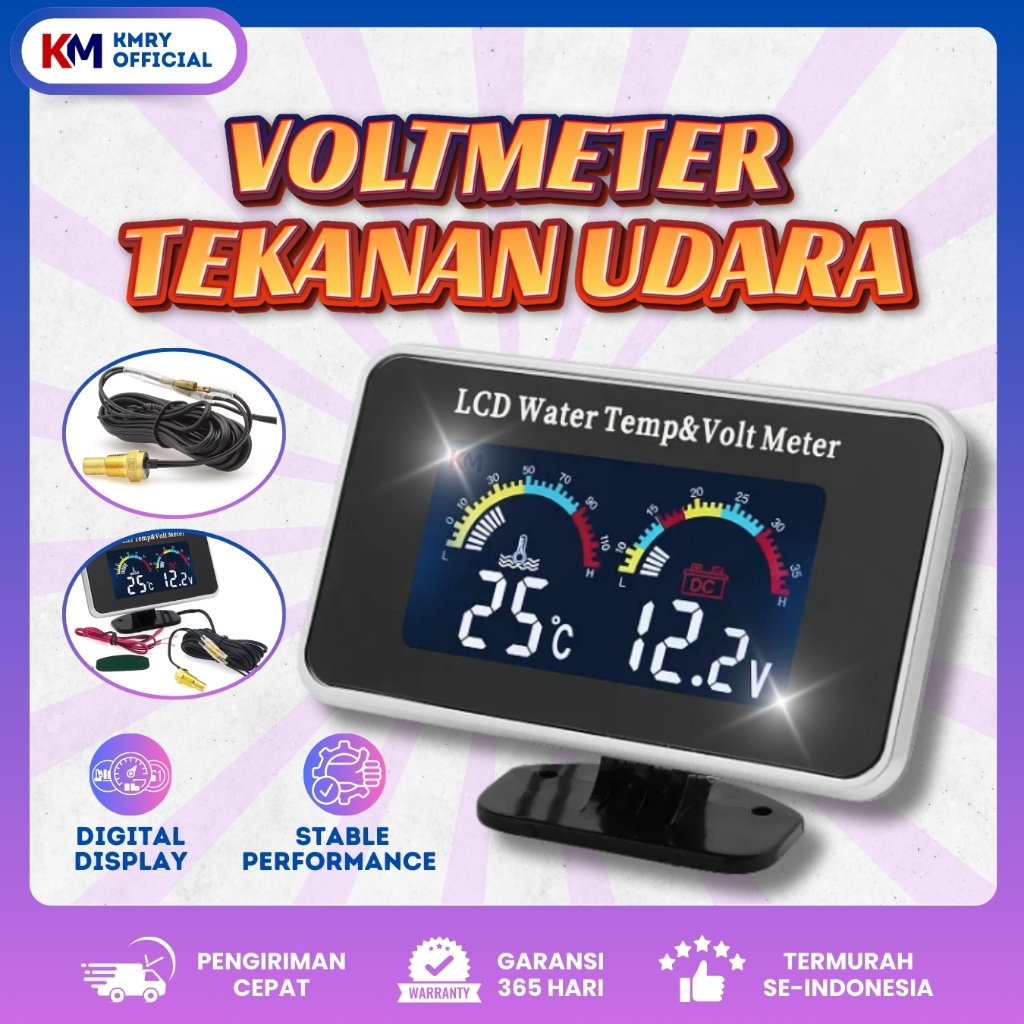 KMRY 2in1 LCD Digital Pengukur Temperatur Air Voltmeter Tekanan Udara/ 12V 24V 2in1 LCD Car