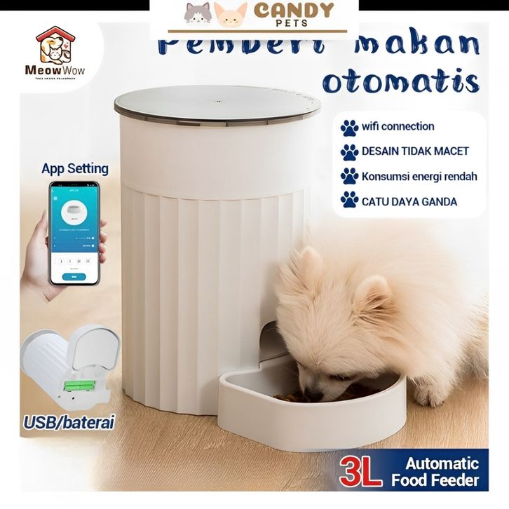 Tempat Makan Hewan Automatic Pet Feeder APP WIFI Connect Kontrol Jarak Jauh Smart Pet Feeder 3 L Best Seller Termurah
