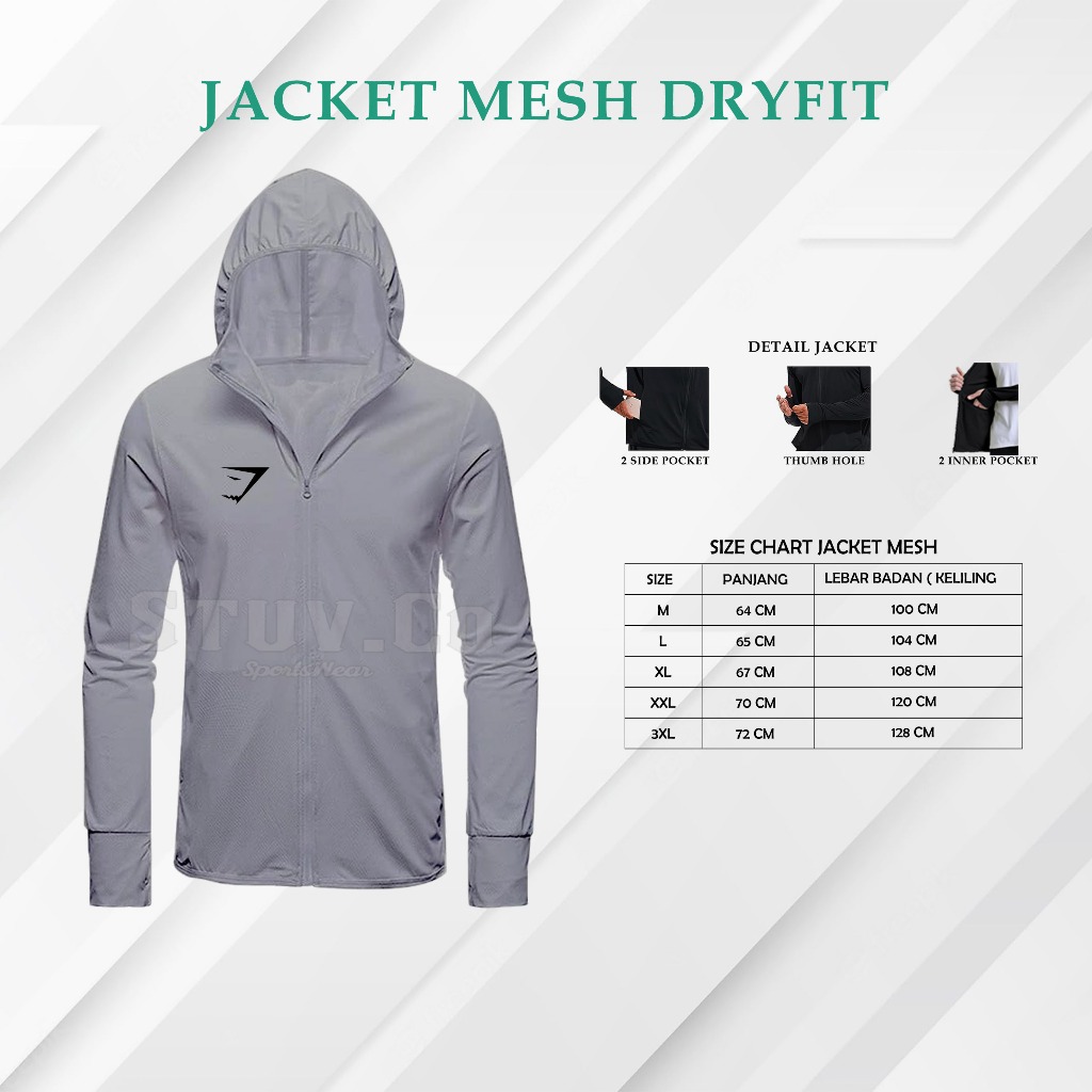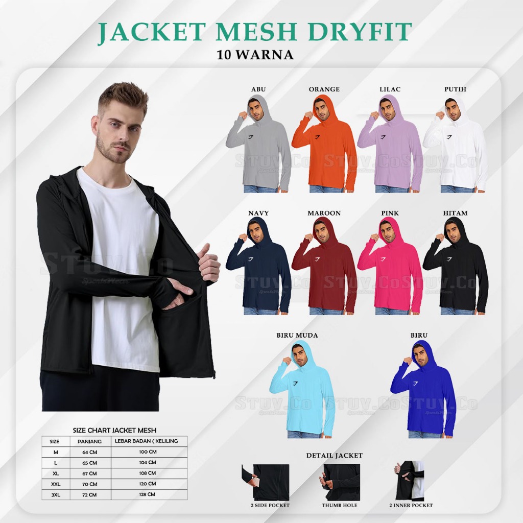 Jaket UV Protection Mesh Dry Fit Olahraga Lari Yoga Fitness Running Pria Wanita Size M-L-XL-XXL-XXXL