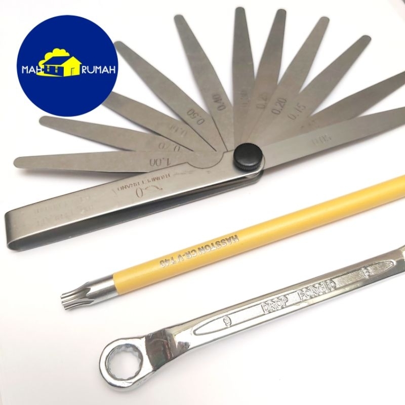 Paket STEL Klep 3pcs Set Motor Fuller Feeler Gauge TRUMPET + Ring 8x9 mm ATS + Kunci Bintang T40 HASSTON
