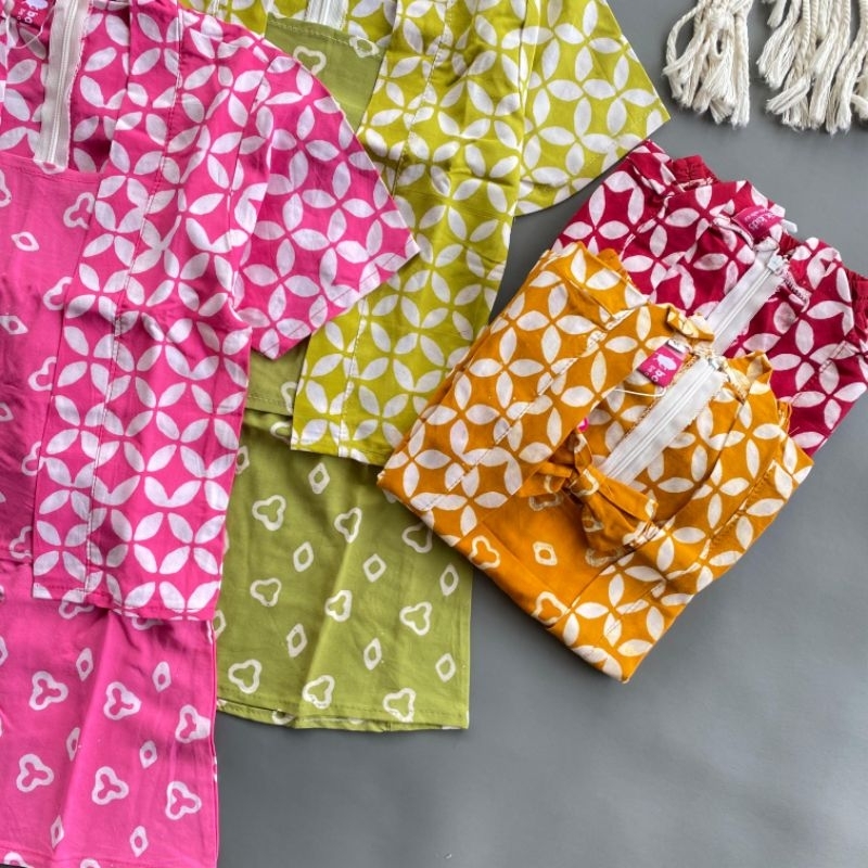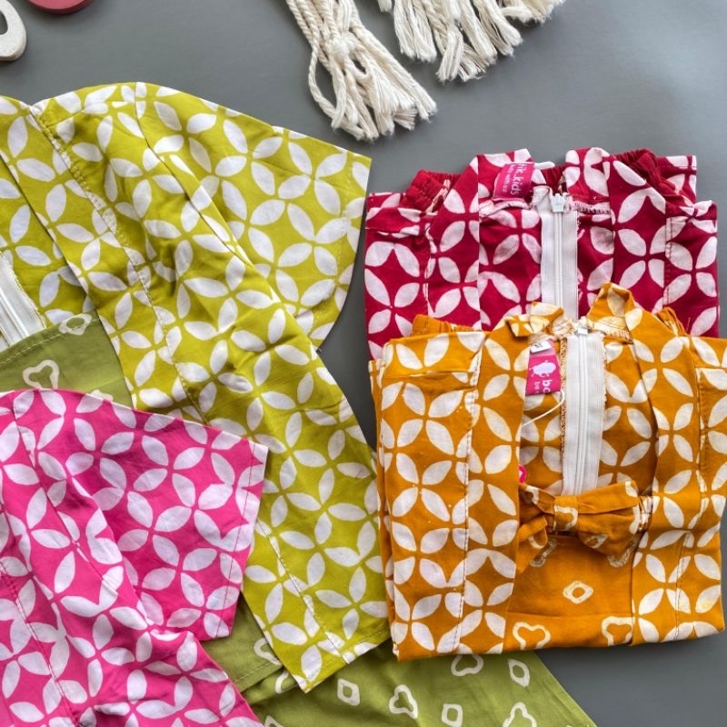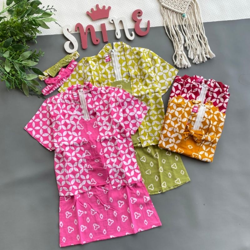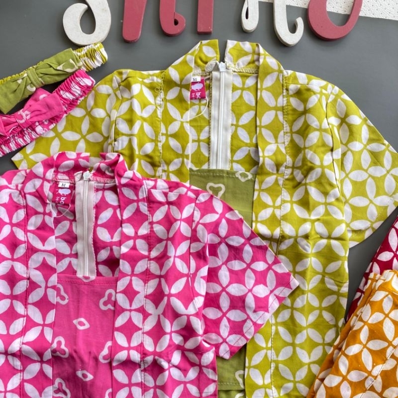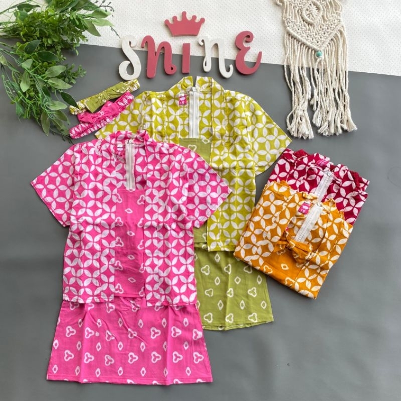Setelan Kebaya Batik Anak-anak Alika Biru Merah Hitam Setelan Kebaya Rayon Anak Perempuan Tidak Panas
