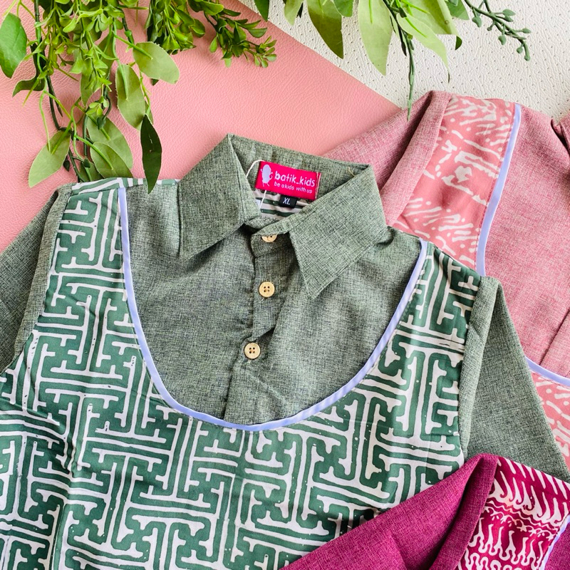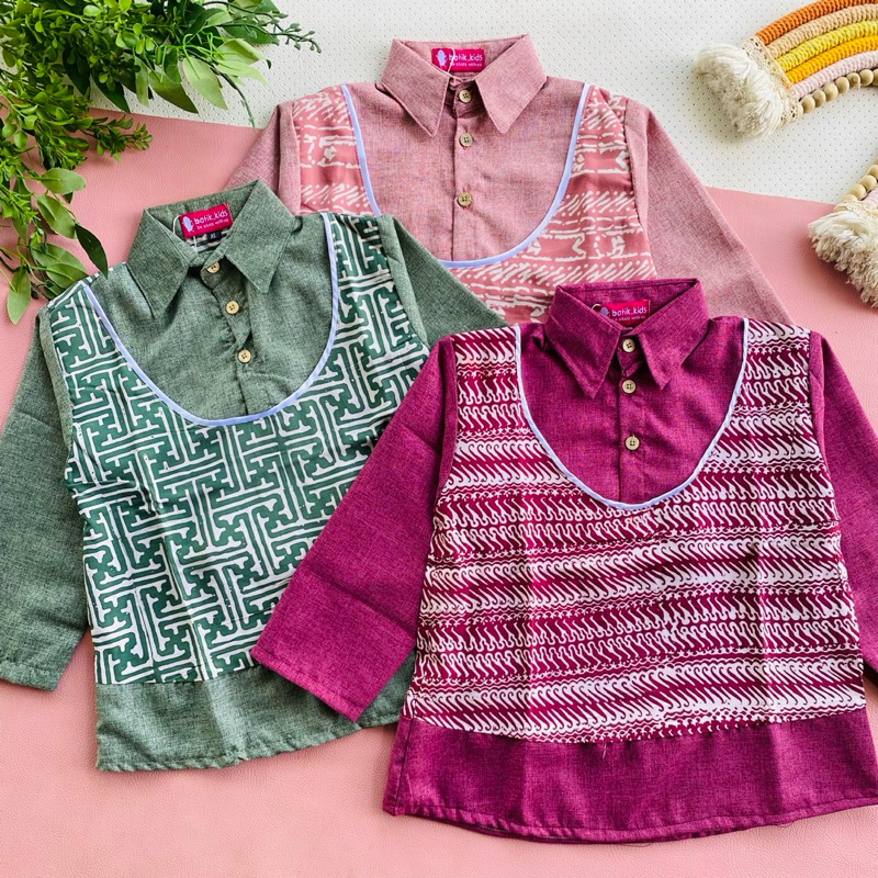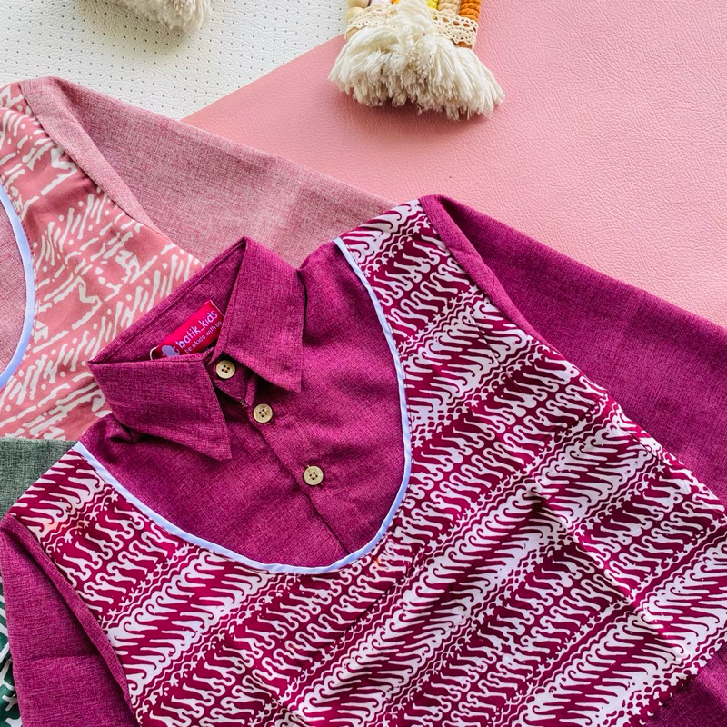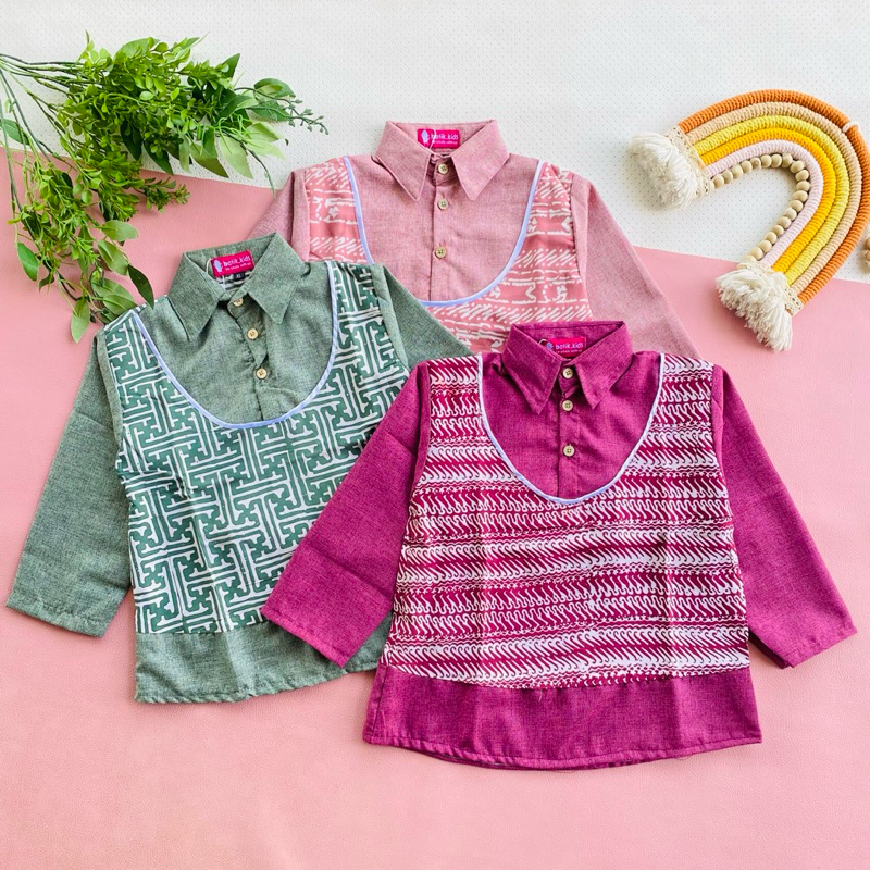 Batik Kids Blus Bisben Lengan Panjang Anna Kombinasi Bahan Madina dan Rayon Nyaman Buat si Kecil Hijab Friendly Pink Sag