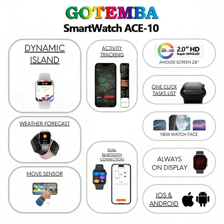 【Ready Stock】GOTEMBA NEW WATCH 10 ACE Smartwatchlike 20Inci Professional Health Sleep Monitoring IP68 Waterproof NFC Wi
