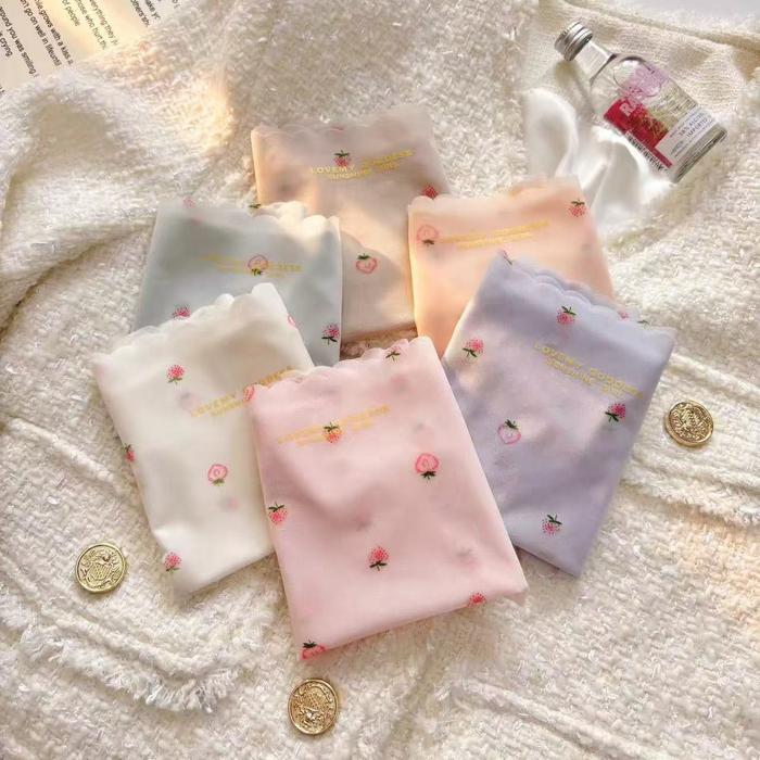 Paket Hemat isi 6Pcs&12Pcs Celana Dalam Wanita Strawberry Anti Gerah Semi Transparan Seamless CD