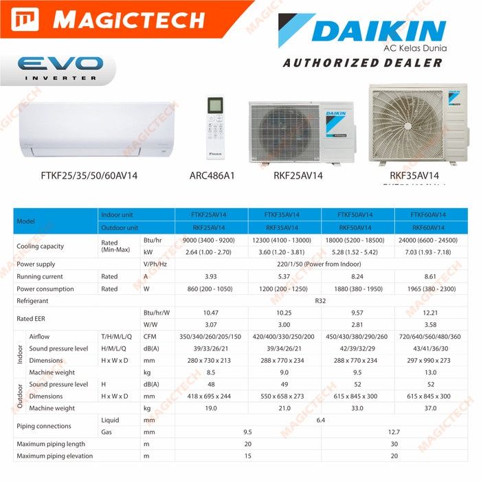 AC DAIKIN 1 PK FTKF25AV14 EVO INVERTER AC SPLIT R32 FTKF25