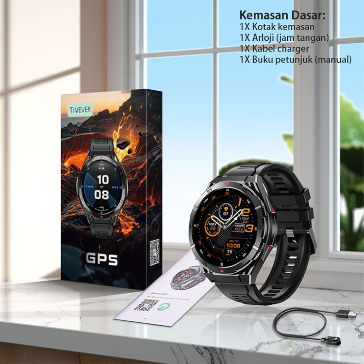 TIMEVER TR2 5ATM Built-in GPS Track Map Route Back AOD jam tangan pintar Pressure Altitude Compass Military Super Smartw