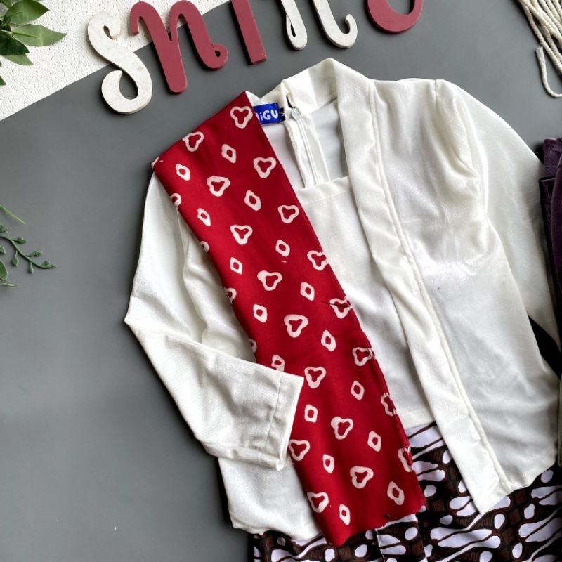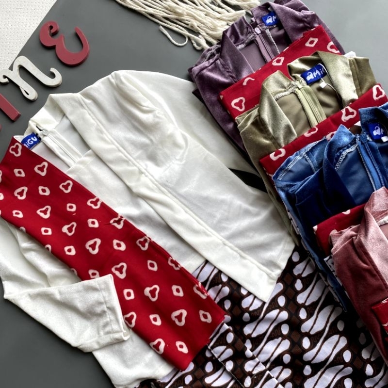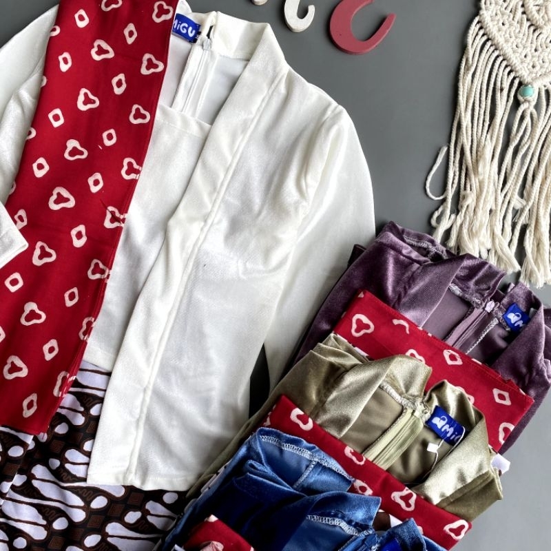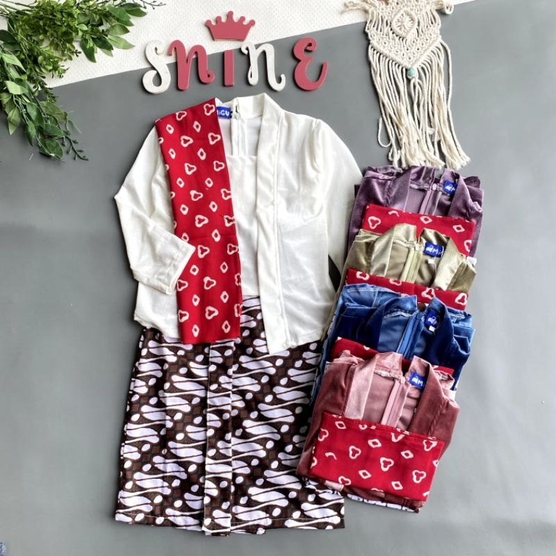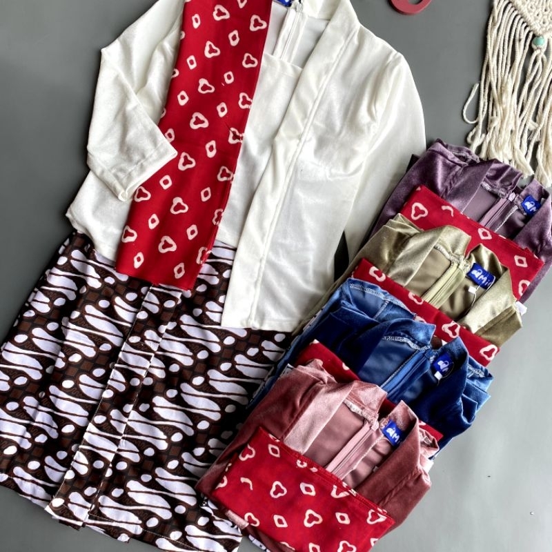 Shine Setelan Kebaya Kutubaru Bludru Lengan Panjang Batik Anak Cintya Putih Sage Biru Ungu Cantik Halus Nyaman Dipakai C