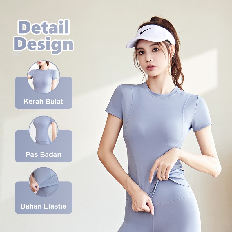 YOUMI Baju Olahraga Wanita Atasan Olahraga Lengan Pendek YM033