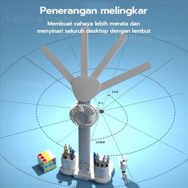 Lighting House Lampu Meja Multifungsi 3in1 Led Lipat Empat Kepala Dengan Kipas Lampu Meja Usb Lampu Live Streaming