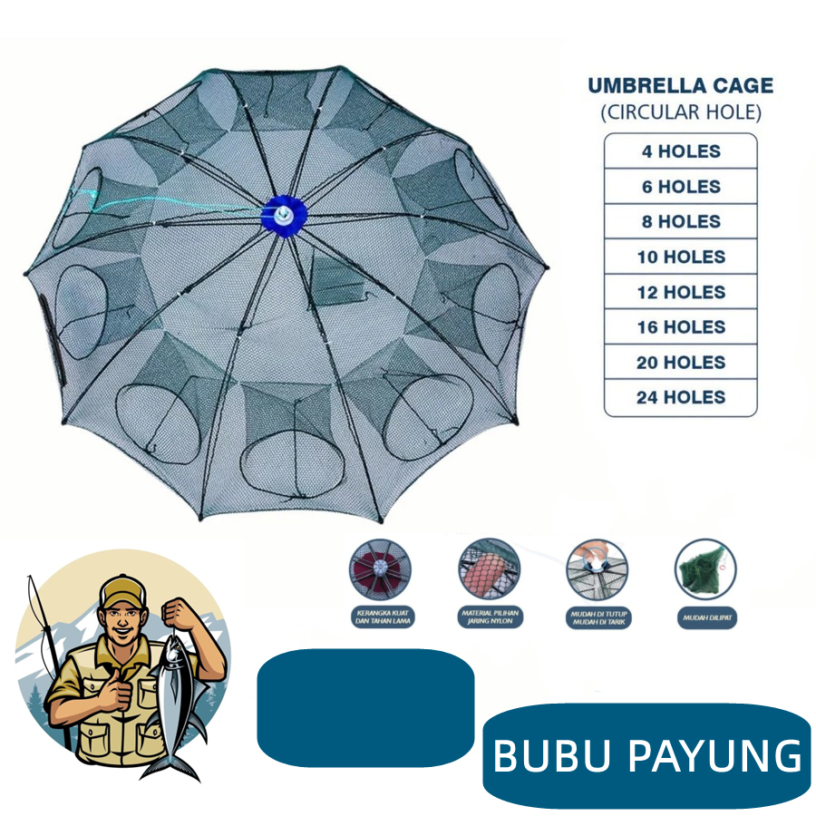 Perangkap Bubu Payung 6 Lubang Alat Jaring Pancing Jala Ikan Udang Kepiting Lele Lobster Sungai Laut Danau Fish Trap Net