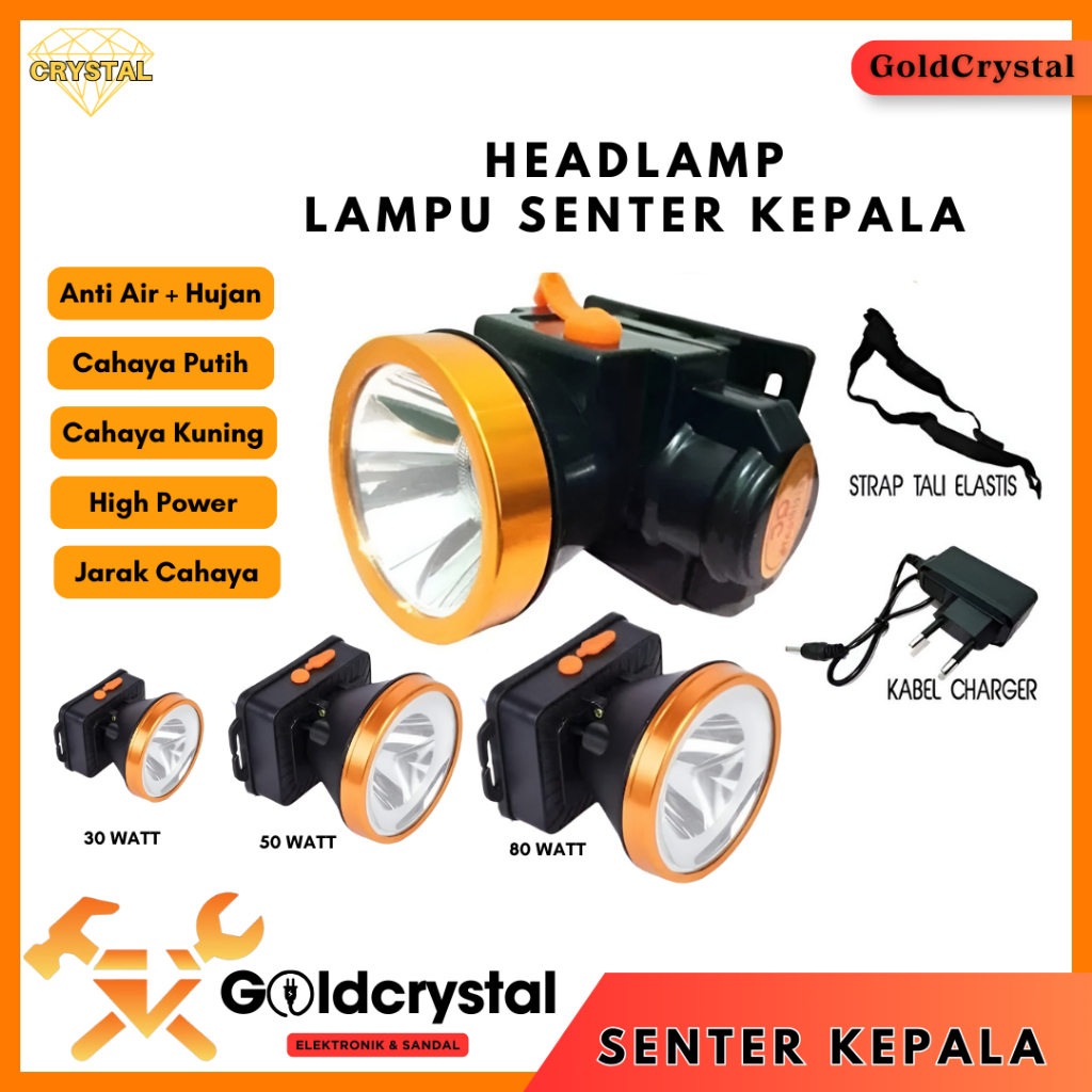 Lampu Senter Kepala LED 20/50/80W Headlamp Battery Lithium