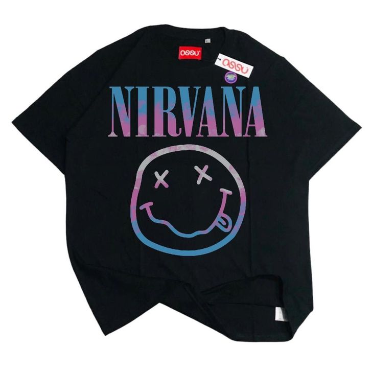 TSHIRT BAND NIRVANA LOGO GRADIEN TONE COLOUR | KAOS BLACK WASHED REGULER OVERSIZE HEAVY COTTON