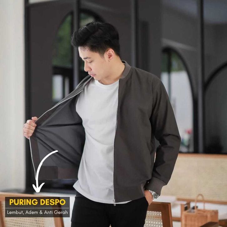 JULJOL Jaket Bomber Pria Casual Matt Canvas