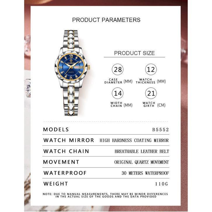 RK - BINBOND Jam Tangan Wanita Jam Tangan Kuarsa Wanita M0DEis Mewah Jam Tangan Dicelup bajja Tahan Karat Tanggal Berca