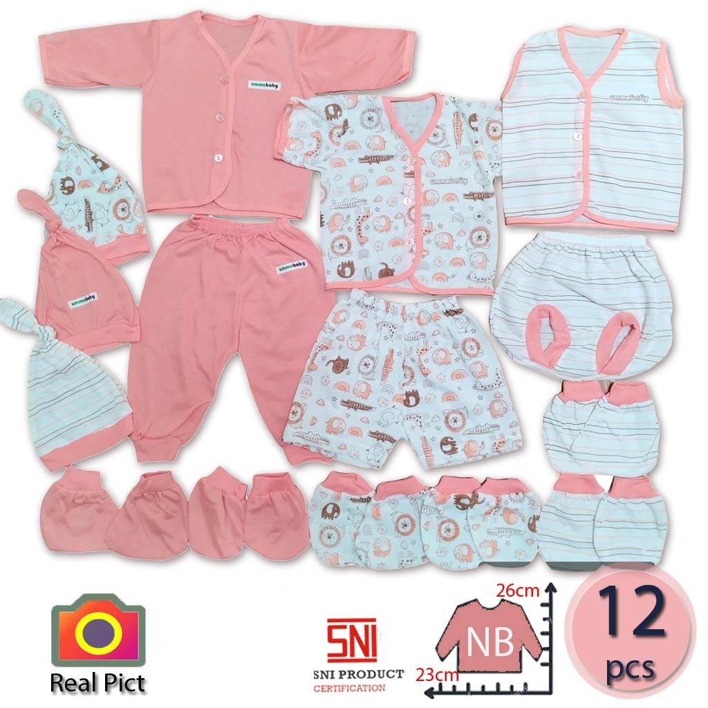 Baju Bayi Paket 12PCS Setelan Lengan Panjang Pendek Brojol Sarung Tangan Newborn baby perempuan lakilaki 0/3/6/12