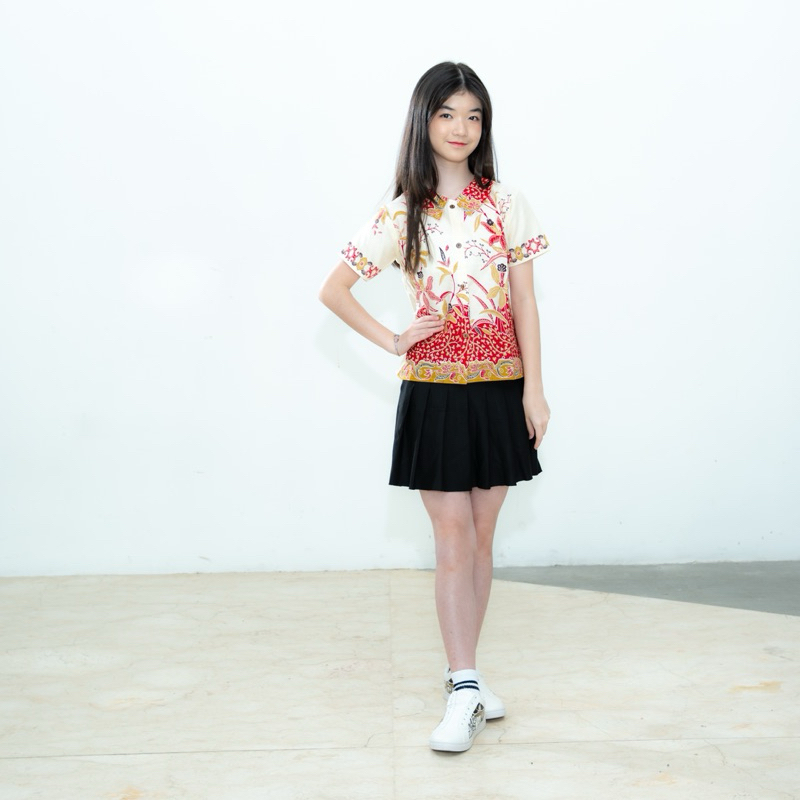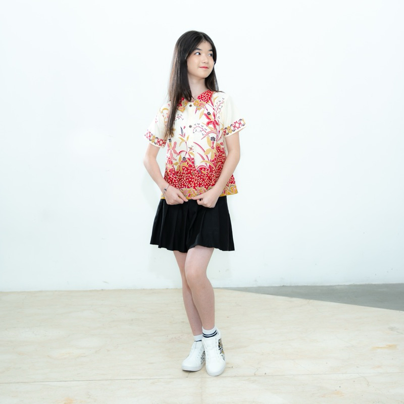 Blus Batik Anak Lily Kemeja Batik Anak Perempuan Putih Merah Ungu Tosca Batik Anak Sekolah Berkerah