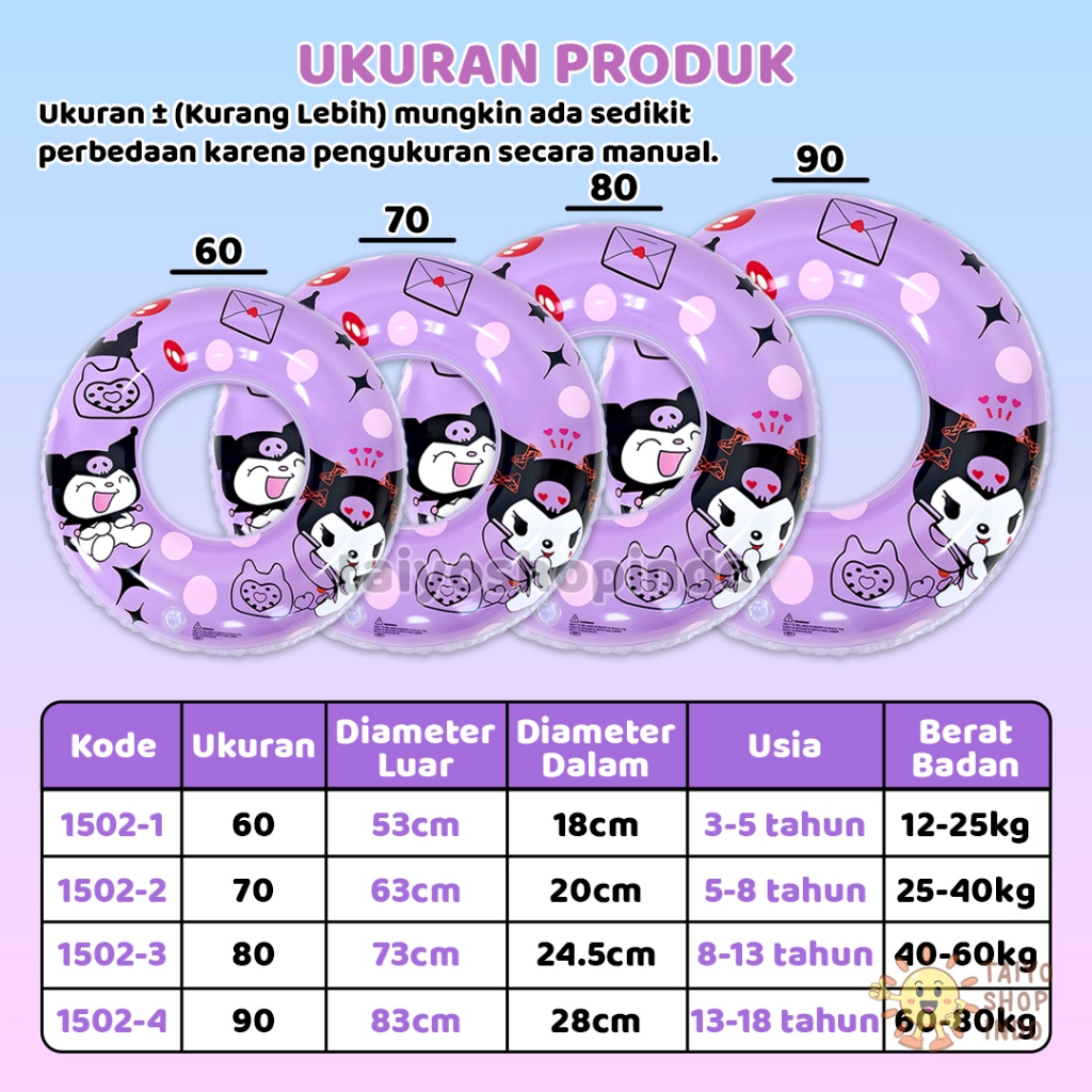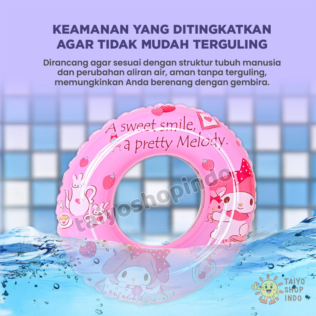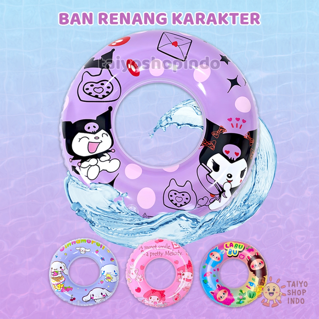 TAIYO Ban Renang Karakter Anak 60 70 80 90cm Sanrio Pelampung Bulat PVC Swim Safety Inflatable