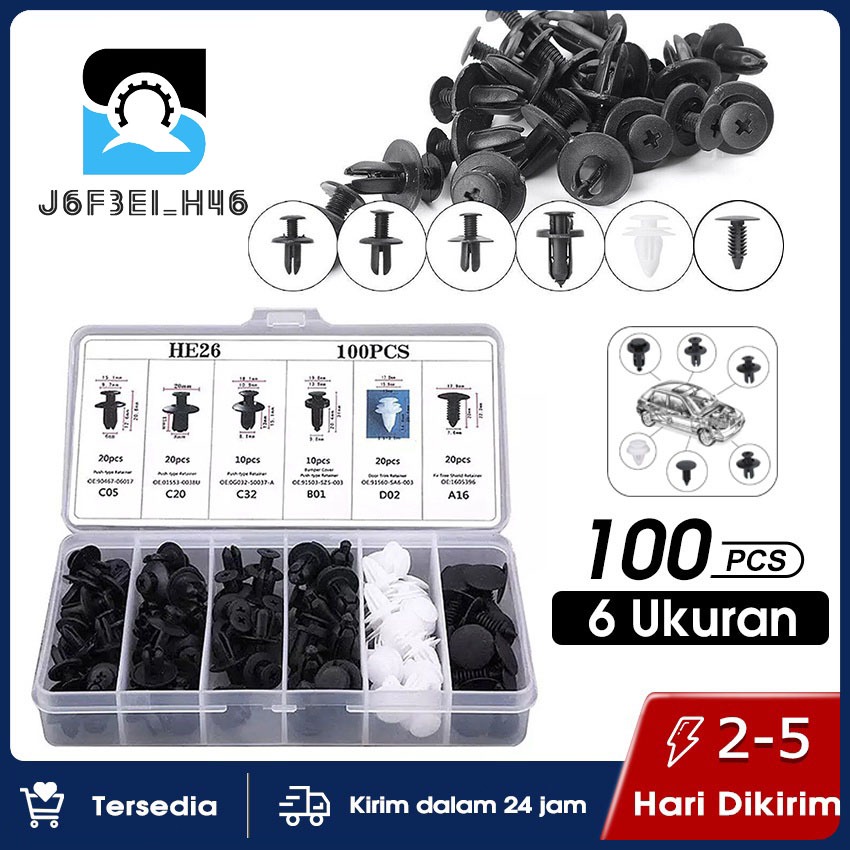 【100PCS】Baut Rivet Mobil / Universal Klip Bumper Baut Body Plastik Mobil Kancing Probolt Clip Motor Serbaguna