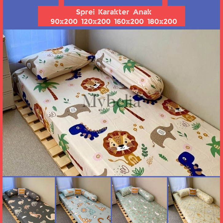 Sprei Anak 90x200 120x200 160x200 180x200 Motif Karakter Binatang Kasur Anti Geser Double Karet Halus Nyaman Premium