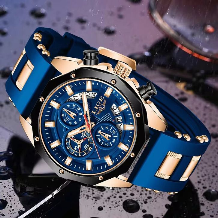 RK - LIGE Original Jam Tangan Pria Fashion Kronograf Aktif Multi Fungsi Anti Air Jam Tangan + Kotak