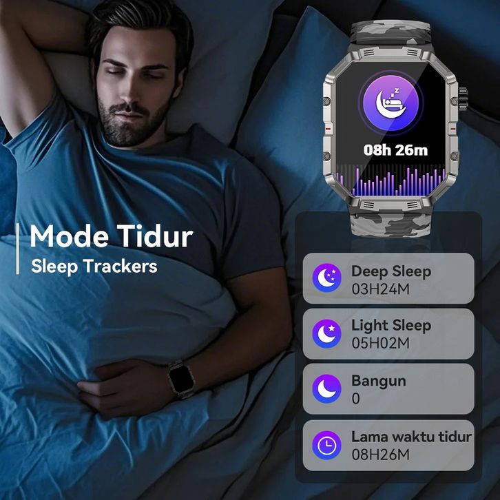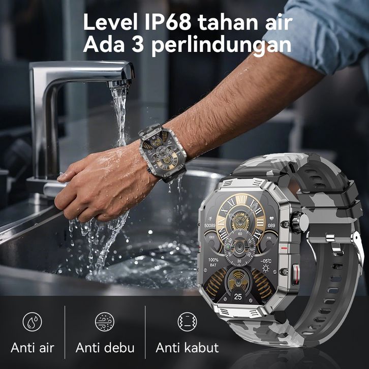 RK - GMove GW55 Military Smartwatch Outdoor Sport Tahan Air IP68 Sleep Health Monitor Jam Tangan Pria