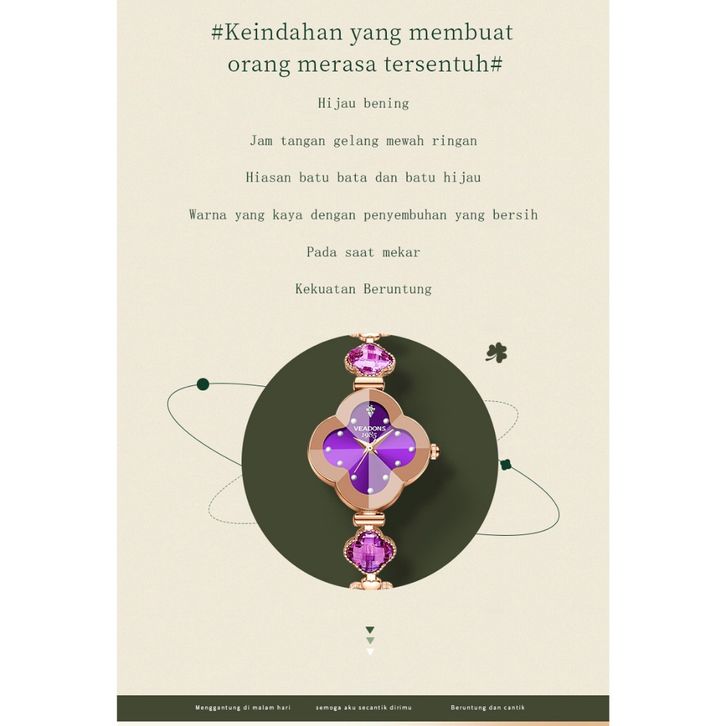 RK - (VEADONS rantai anti air jam tangan casual wanita original 100 fashion empat bunga Watches