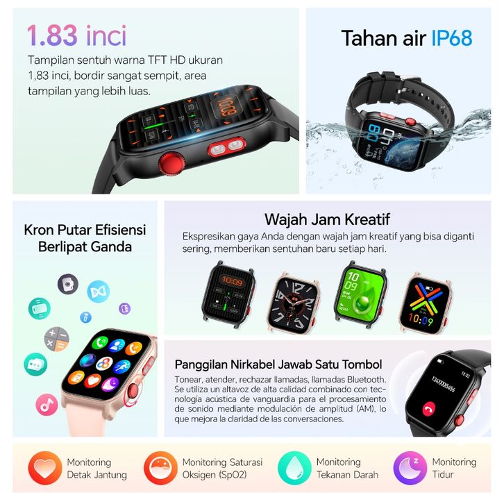RK - Morein Smartwatch S1 Plus Wanita Pria Jam Tangan Pintar Bluetooth 5.0 IP68 Tahan Air Fitness Tracker Detak Jantung
