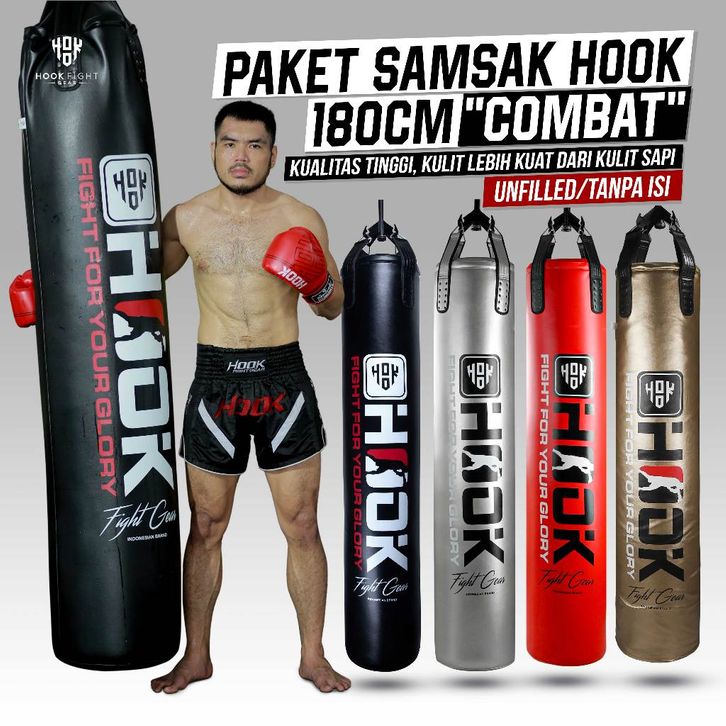 Samsak Tinju Gantung 180cm Hook Sansak Muay Thai Punching Bag Taekwondo Sandsack Silat Sarung Samsak Karate