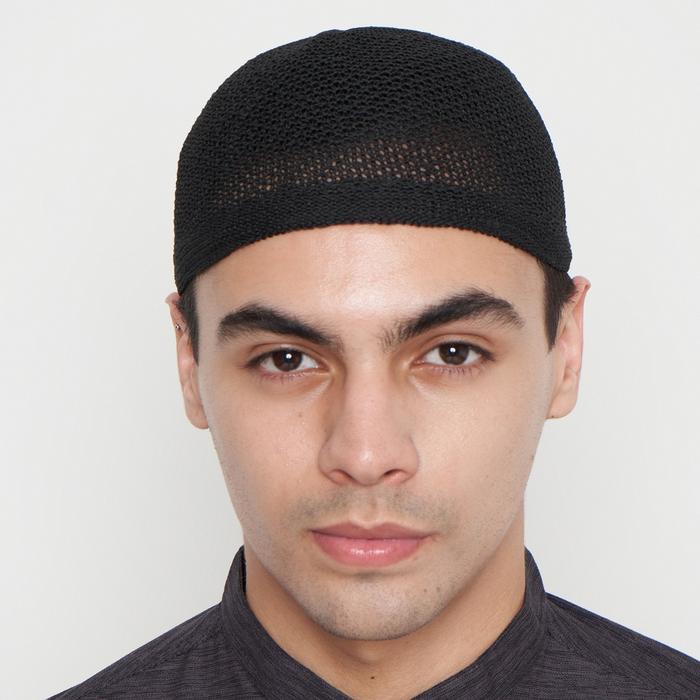 Peci Rajut Pria Polos Warna Hitam Perlengkapan Sholat Pria