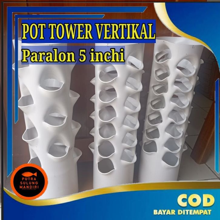 Media Tanaman Pot Tower Vertikal Pipa PVC 5 Inchi 50cm Hidroponik