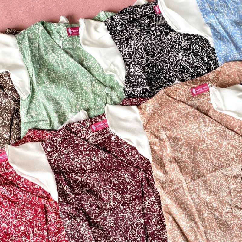 Batik Kids Outer Atasan Blus Batik Anak Cap Azalea Bahan Halus Coklat Marom Merah Hitam Biru Sage Cream Navy
