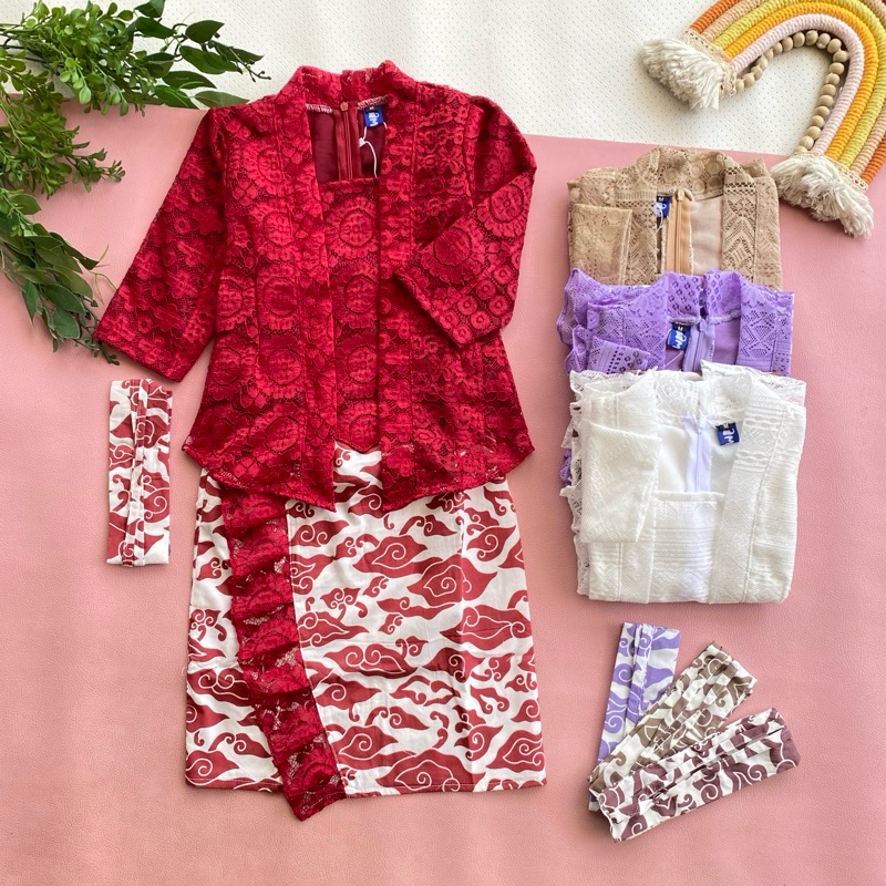 MIGU X BATIK KIDS KEBAYA ANAK NEW BROKAT HIJAB MUSLIM LENGAN PANJANG KEBAYA ANAK JAWA MERAH PUTIH UNGU CREAM