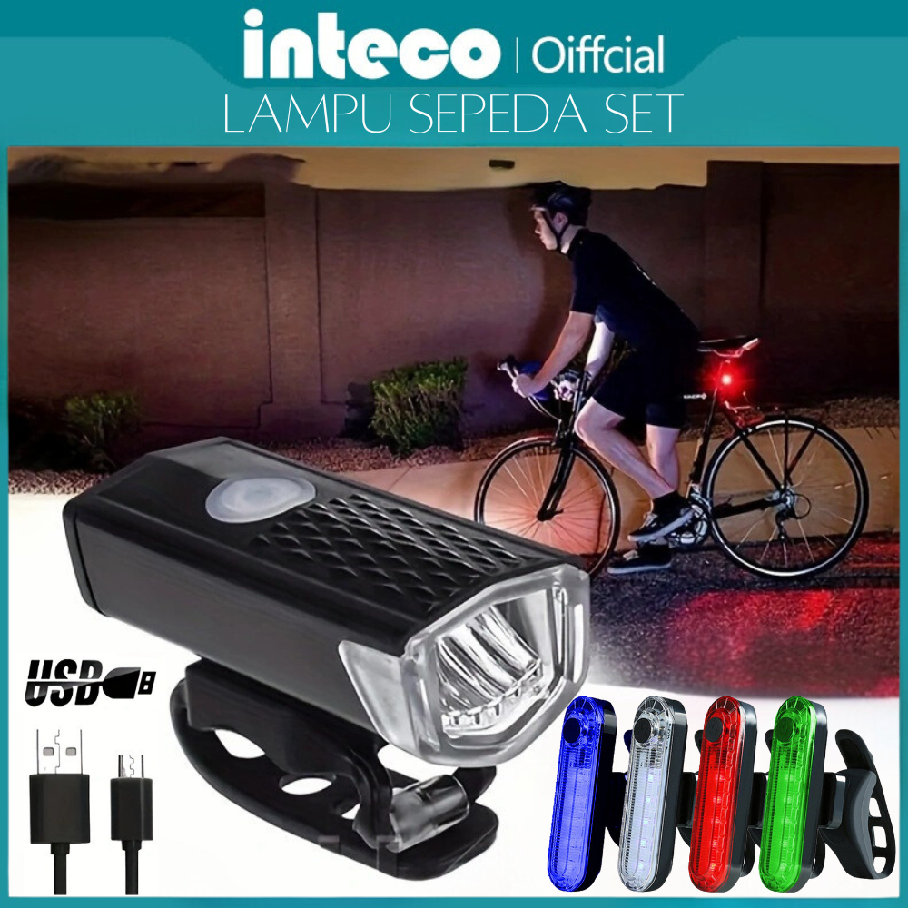 Lampu Sepeda Sepaket Depan Belakang USB LED Rechargeable Super Terang Anti Air Olahraga Outdoor