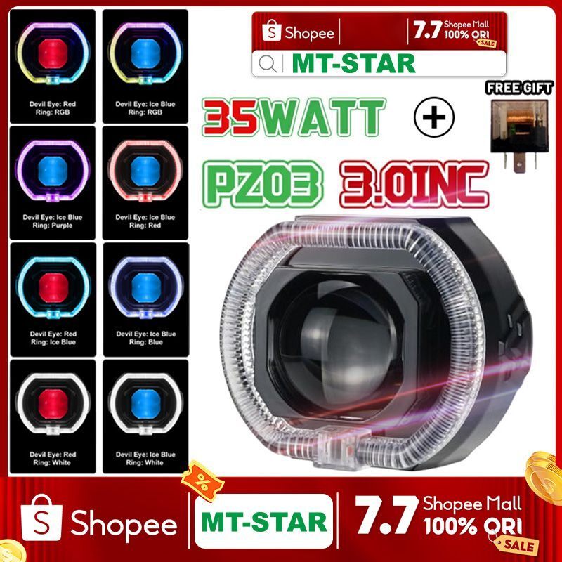 【MT STAR】PZ03 Projie Biled Matrix X1 3 Inch & PX03 2.5 inch High Low Putih Body black plus kipas Premium