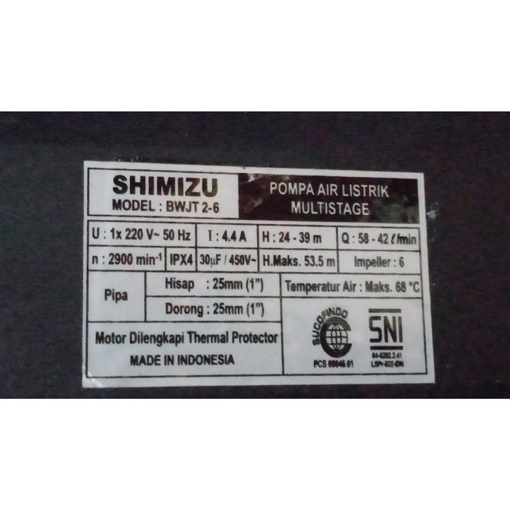 Shimizu BWJT 2-6 Pompa Air Stainless Steel Non Otomatis