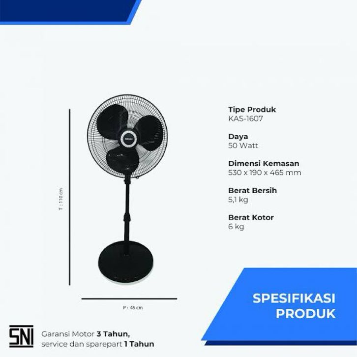 KOTA BATAM - Miyako Kipas Angin Berdiri Stand Fan 16 inch KAS1607 KAS 1607 KAS-1607 GARANSI RESMI