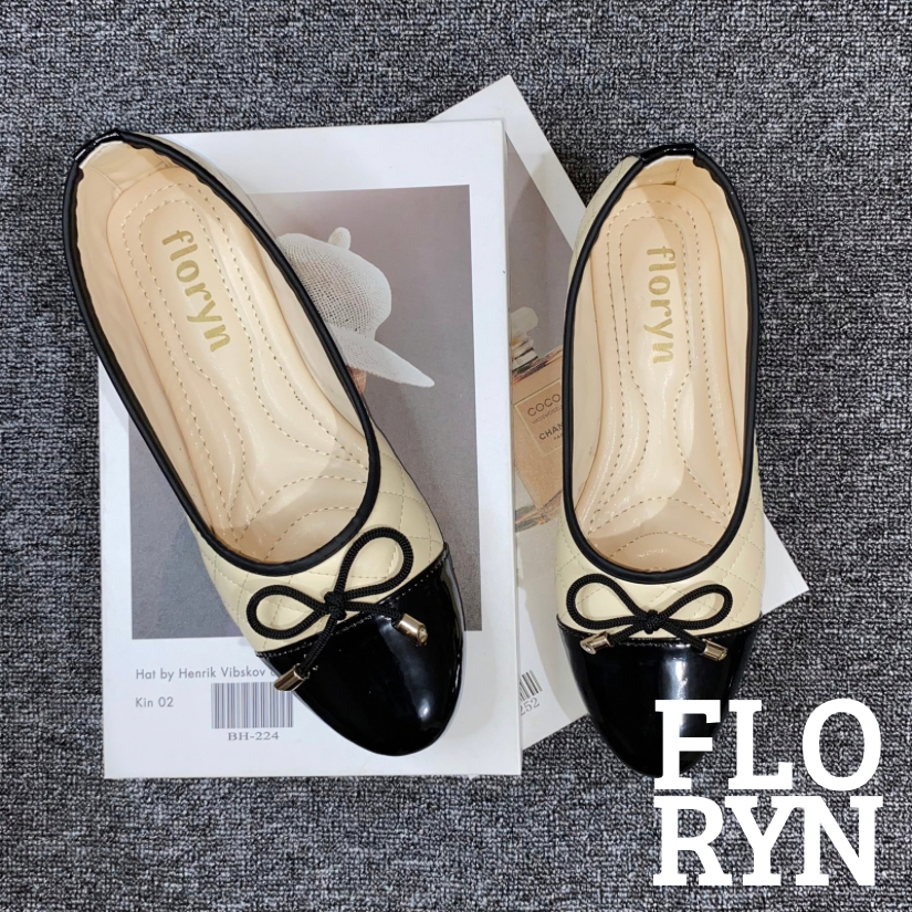 FLORYN SHOES - Flatshoes NOVA Ballerina Premium Wanita Tali Pita Datar Twotone Korea Hijabers Kasual