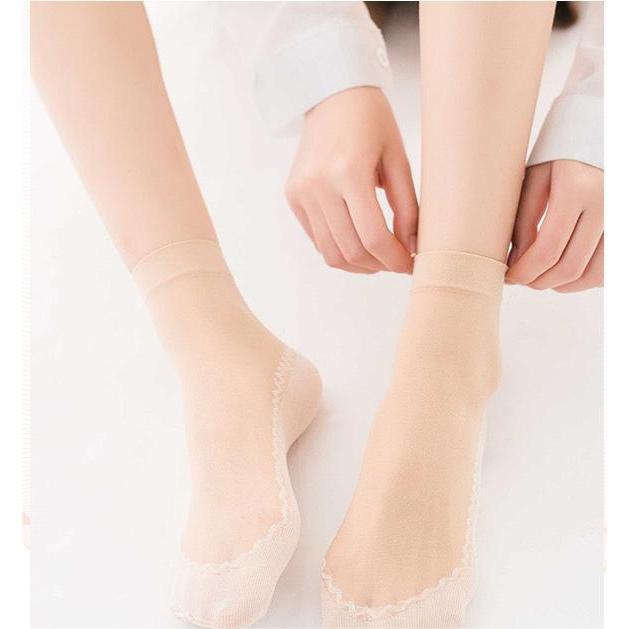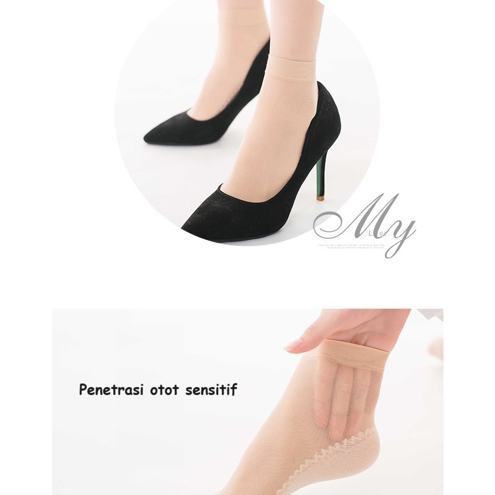 HIPPOLAND Kaos Kaki Stocking Wanita Pendek Sock Motif / Kaus Kaki Stoking Tipis Transparan Cewek Bahan Tipis Pendek Warna Kulit dan Hitam Kaos Kaki 380-381