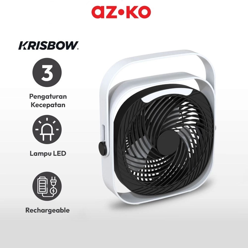 AZKO Krisbow 6 inci Kipas Angin Emergency Dengan Lampu - Putih Portable Fan Kipas Mini Travel Serbaguna Kipas Angin Isi