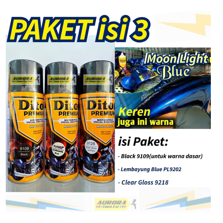 PAKET Diton Premium Moonlight Blue / Hitam Lembayung Biru isi 3 | cat semprot spray sepeda motor mobil pilok pilox PL 92
