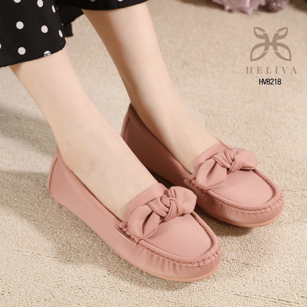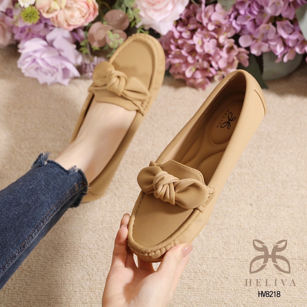 HELIVA PERRY Flat Loafers Shoes Model Bow HV8218 – Sepatu Wanita Slip On Moccasin Motif Polos