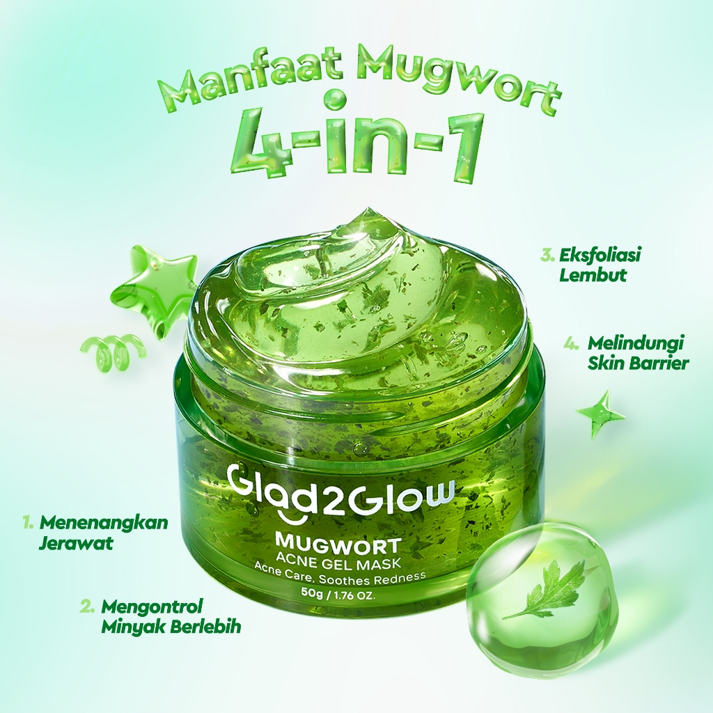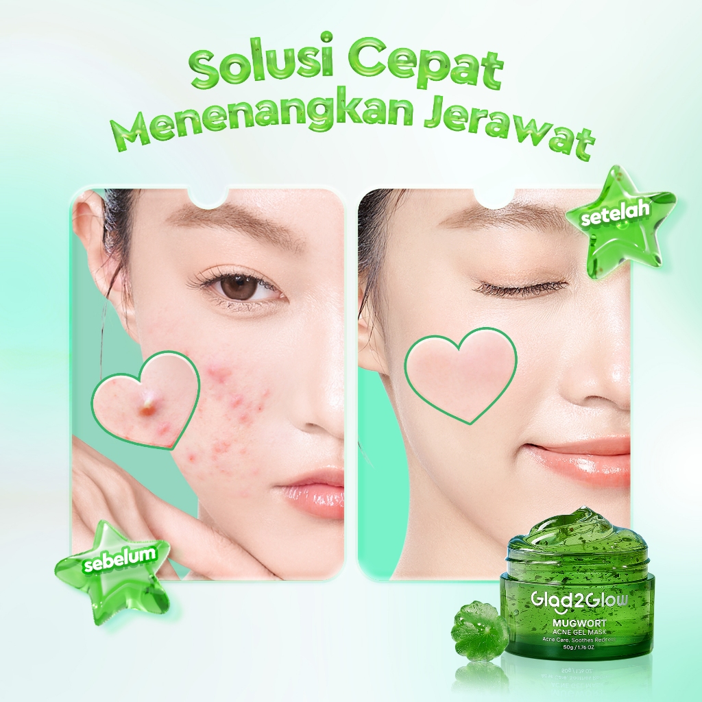 Glad 2 Glow Official [New Launch] glad2glow Mugwort Acne Gel Mask 50g Masker Wajah Masker Komedo G2glow G2glow 1 Paket