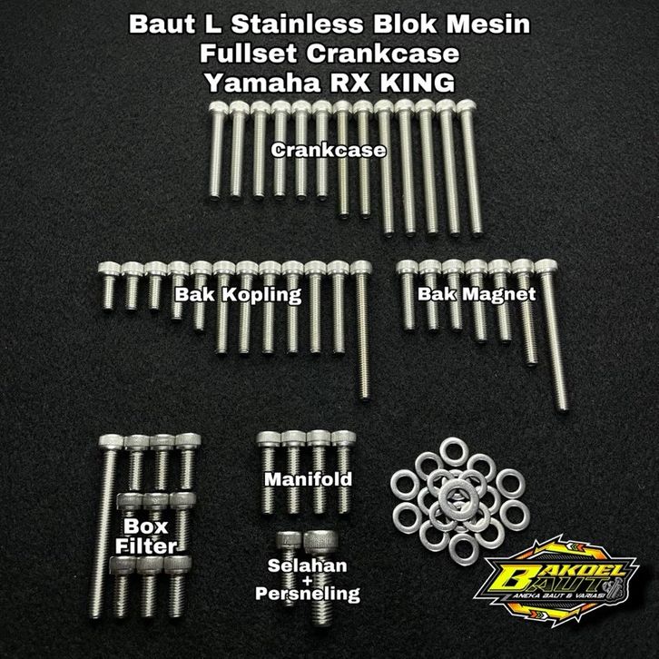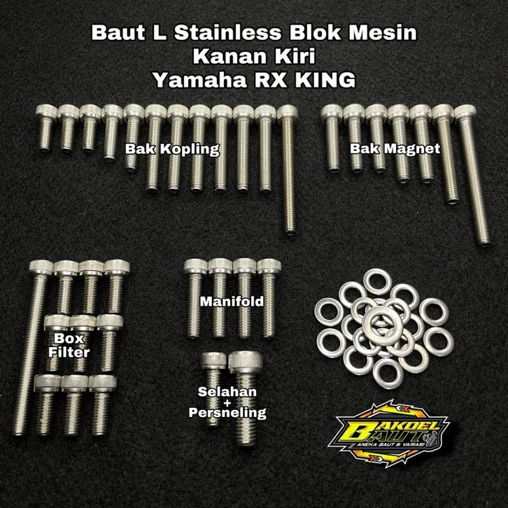 Baut Blok Mesin RX KING Baut L Stainless THE Anti Karat, FULLSET RX KING