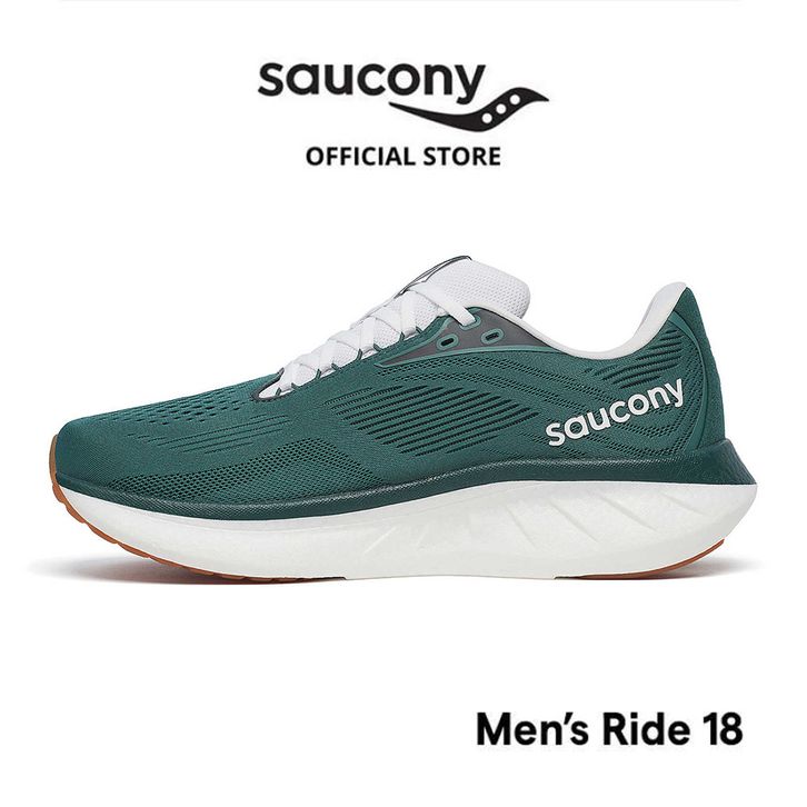 Sepatu Lari Pria SAUCONY Shoes Ride 18 Men - Pine / White