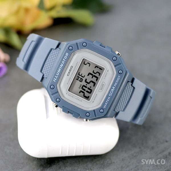 Jam Tangan Wanita CASIO W-218HC-2AVDF Digital Karet Original Biru