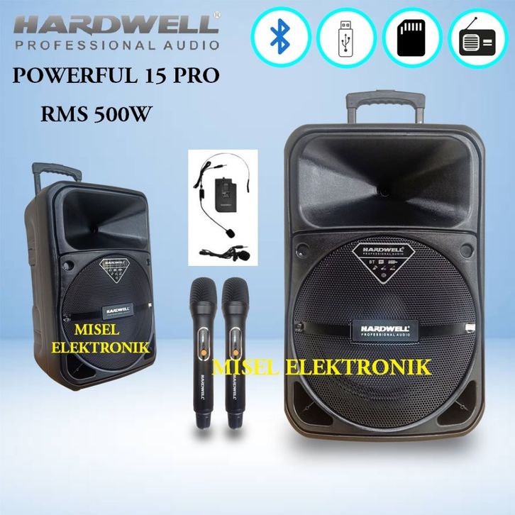 Speaker Portable 15 inch Hardwell Powerful 15 pro RMS 500 Watt USB Bluetooth